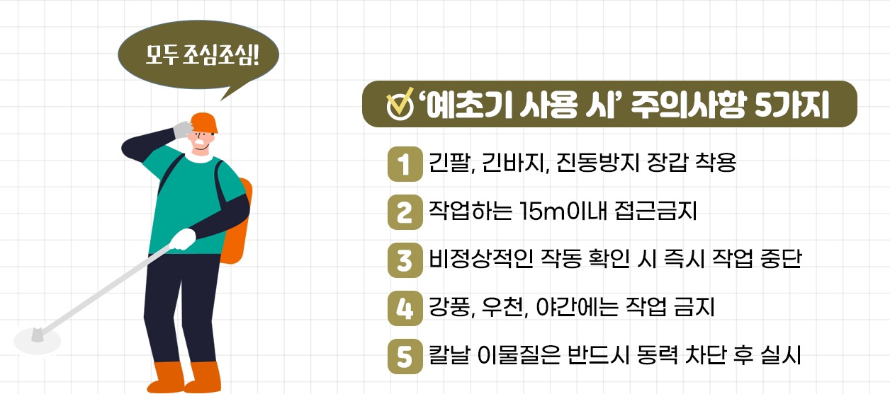 다가오는 명절을 앞두고 벌초시즌이 다가오면서 그에 따른 부상이 발생하고 있습니다. 정부에서 공지한 예초기 사용 전 알아야되는 주의사항에 대해서 한번 알아보겠습니다.