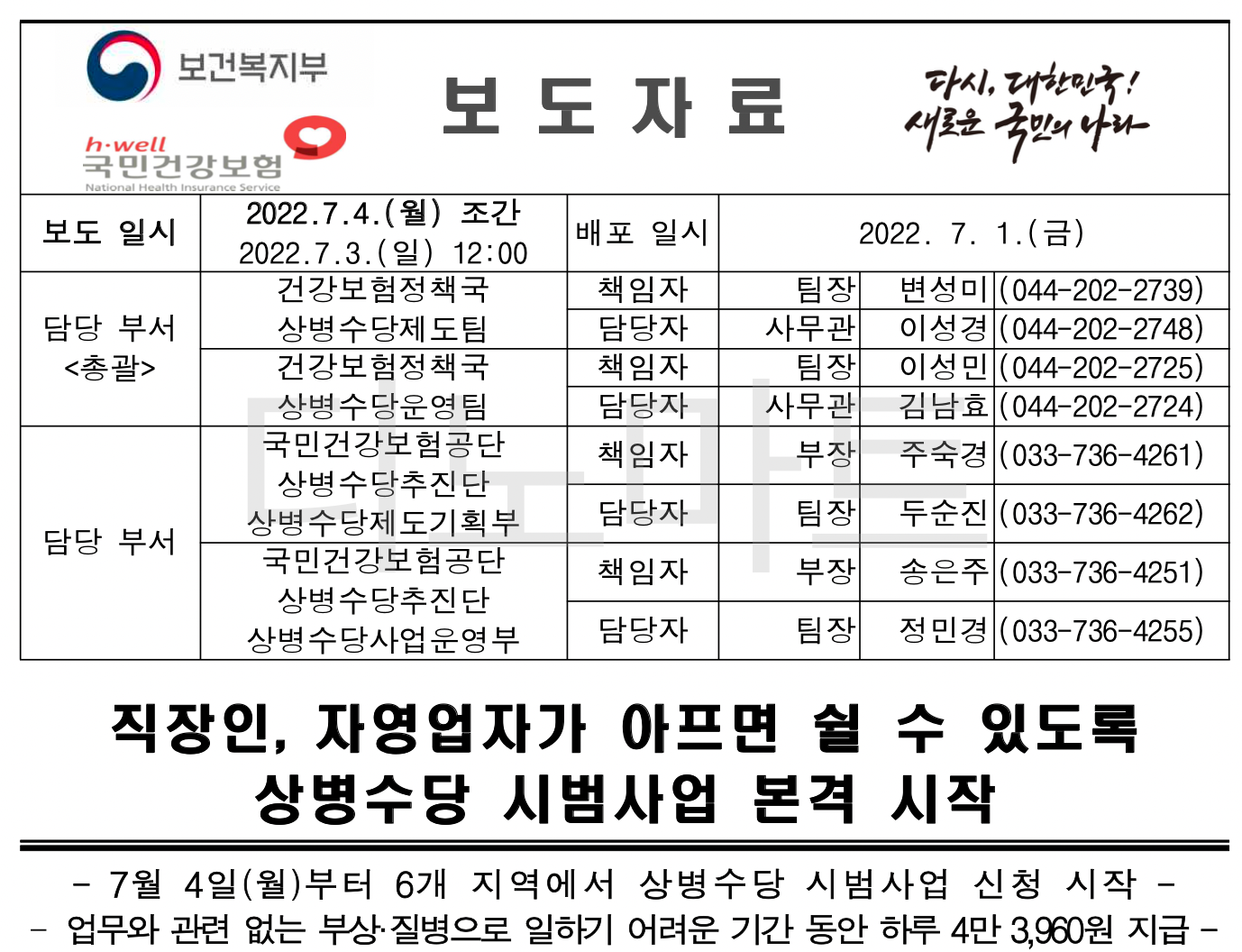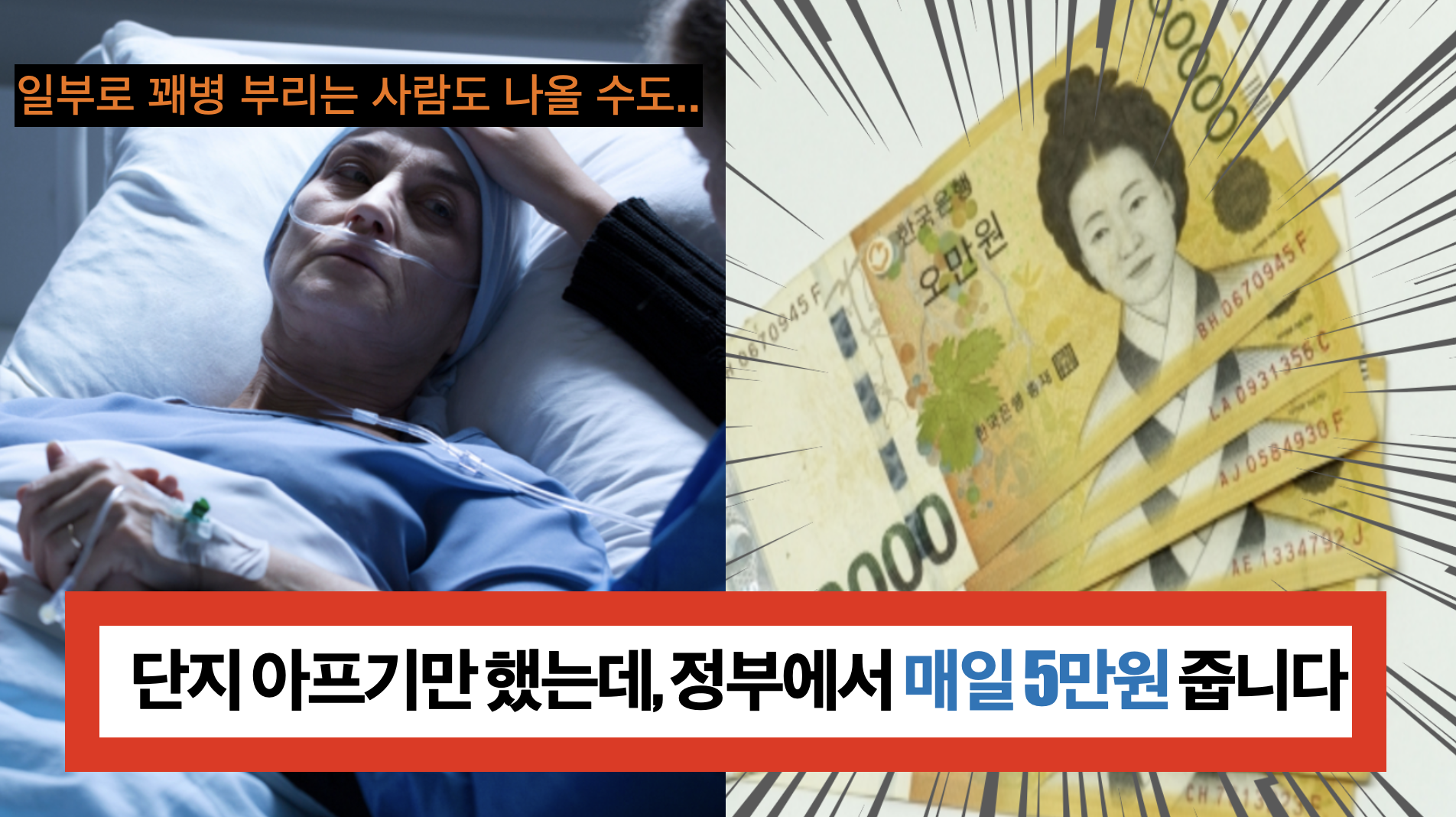 부상 또는 질병으로 일을 못하는 근로소득자에게 정부에서 매일 5만원의 금액을 지급할 것으로 예상됩니다. 22년 윤xx 정부에서 추진하는 정부과제이기 때문에, 신경을 더 쓸 수 밖에 없습니다. 어떠한 내용인지 한번 알아보겠습니다.