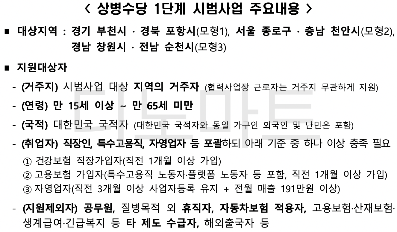 공무원, 질병목적 외 휴직자, 자동차 보험 적용자 등 일부 대상은 제외