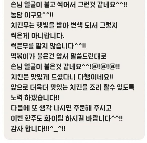 손님 배민 리뷰에 빡친 사장님 댓글