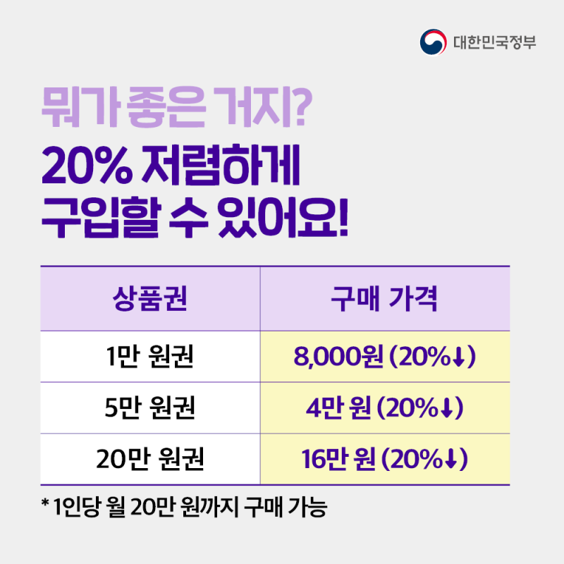 좋은점은 20% 저렴하게 구입할 수 있다고 합니다.