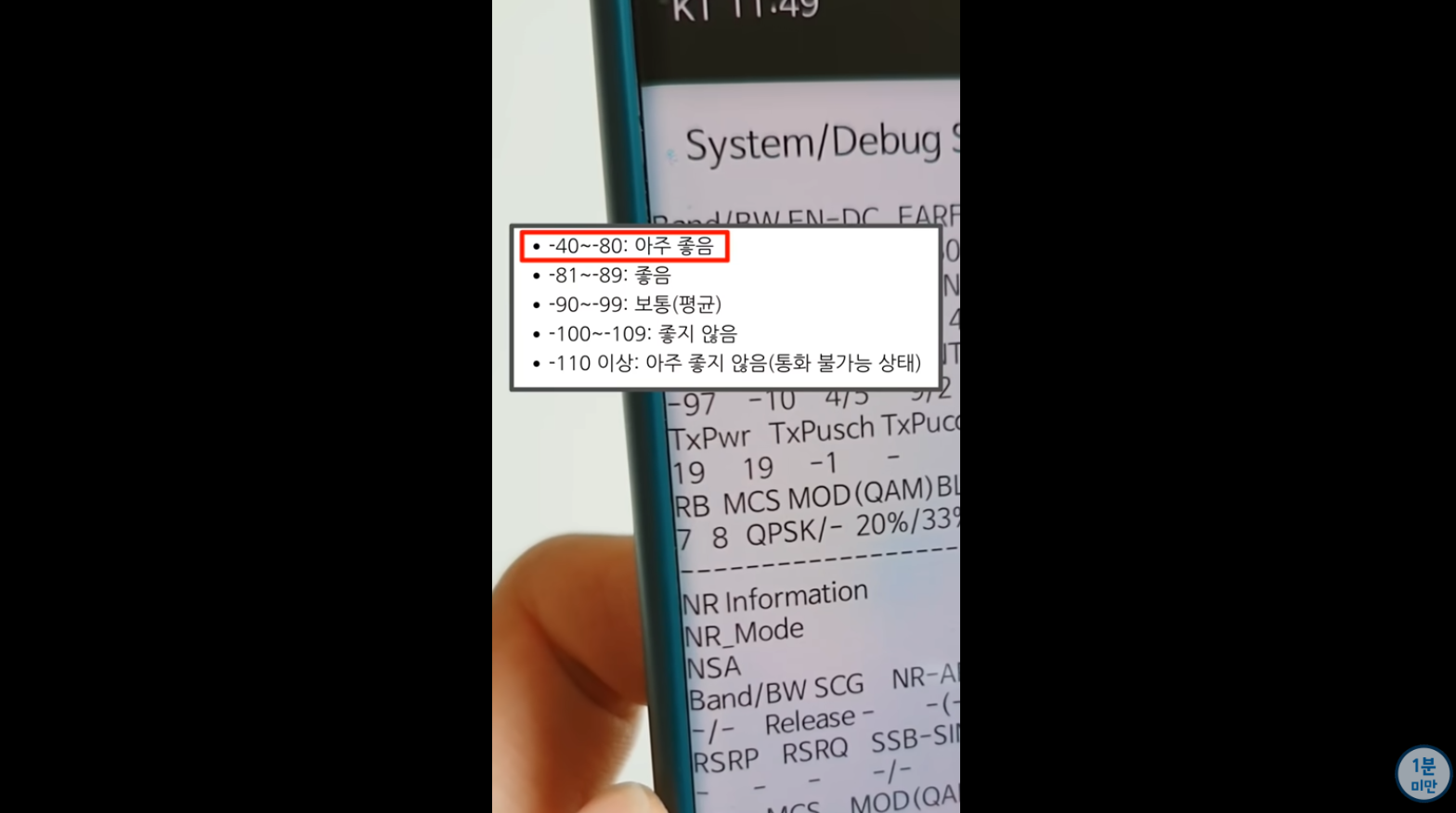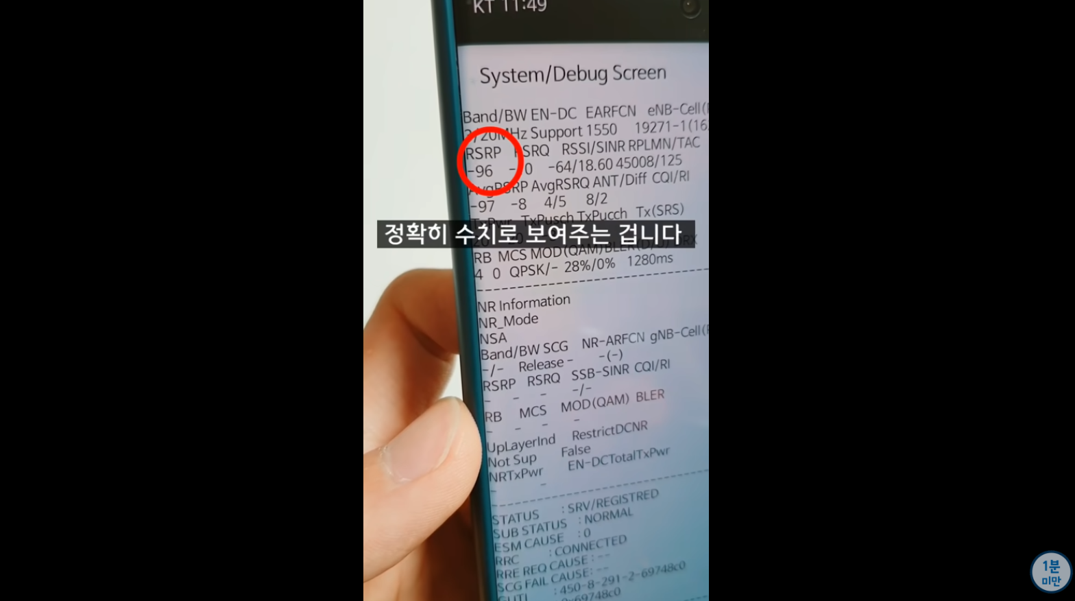 2. 하단과 같이 RSRP 문구 하단에 숫자가 나오게 됩니다.