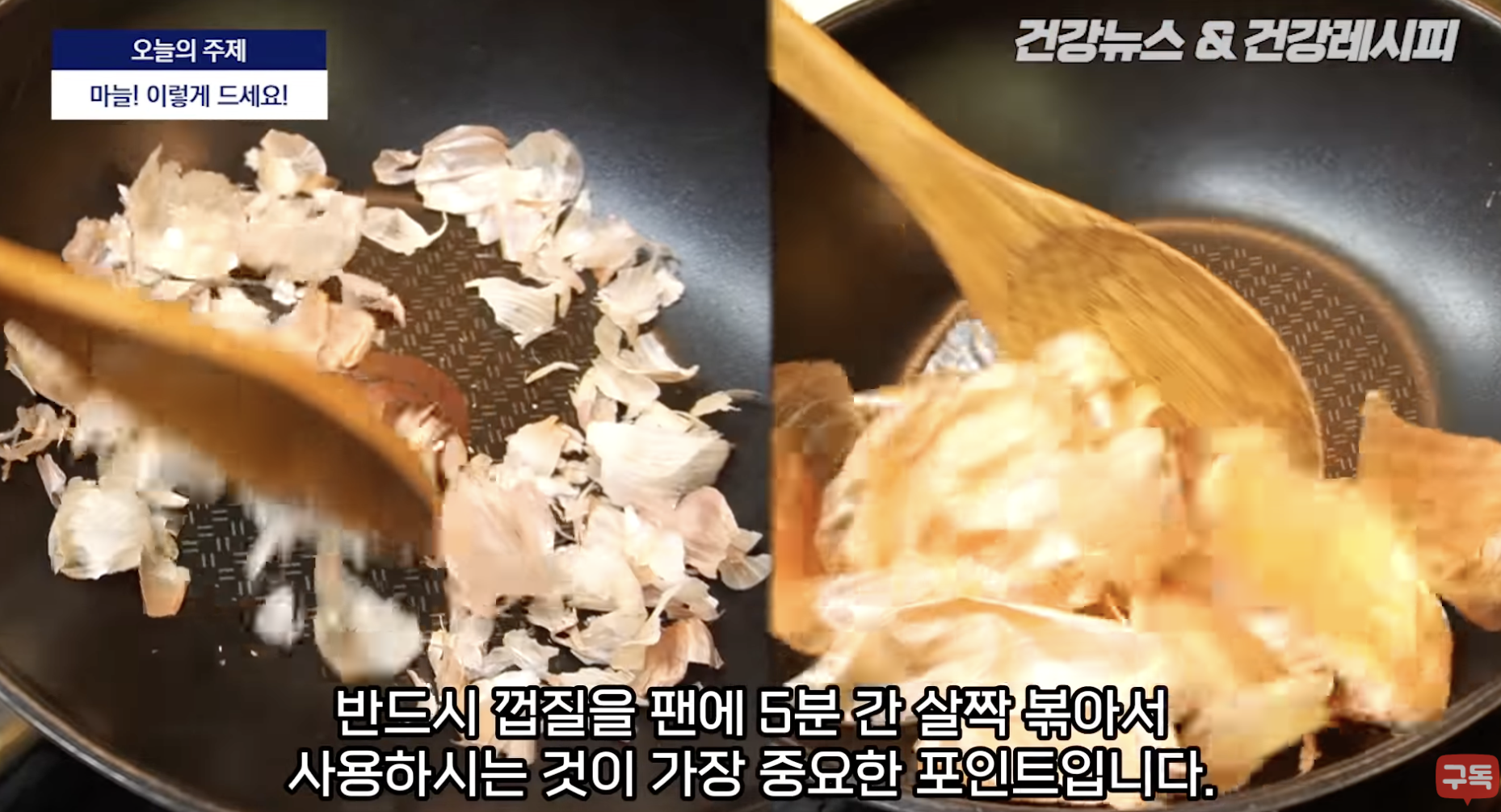 1. 양파껍질과 마늘껍질은 열을 가하게 되면 활성 산소를 제거하는 폴리페놀 성분이 증가합니다. 이러한 이유로 반드시 껍질을 팬에 5분간 살짝 볶아서 사용하는 것이 가장 중요합니다.