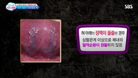 1. 혀 아래의 정맥이 돌출될 경우, 심혈관계 이상으로 체내의 혈액순환이 잘 되지 않습니다.