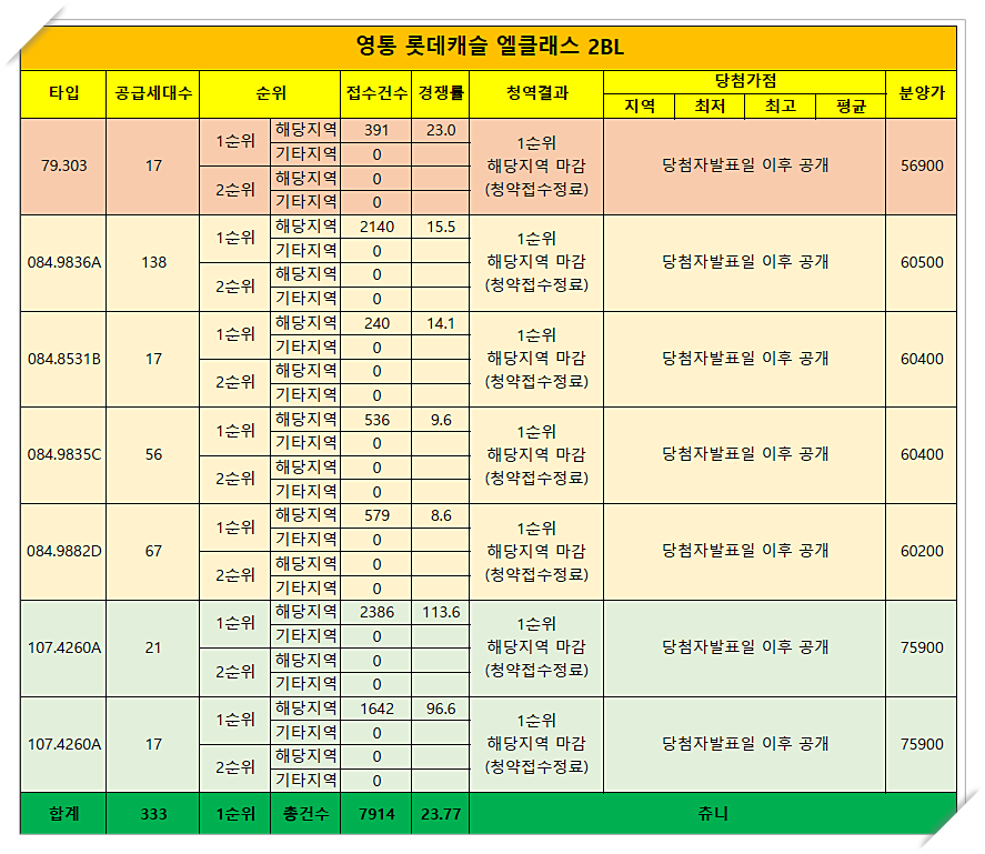 영통 롯데캐슬 엘클레스 분양가 및 1순위 청략 경쟁률 공유해드립니다