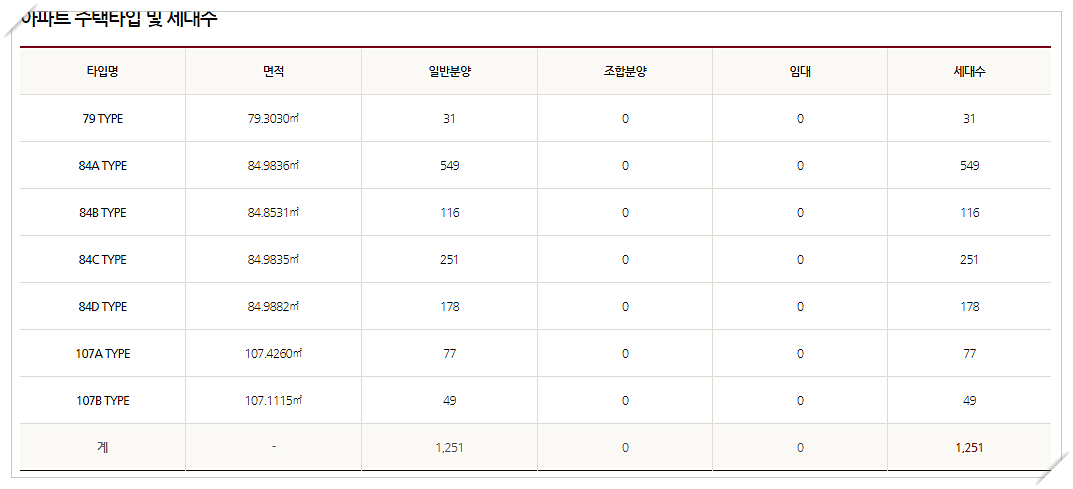 총 8타입 1251세대입니다.