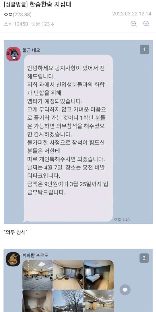오늘자 지잡대 엠티 톡방