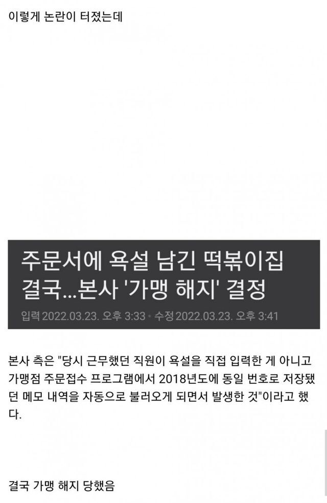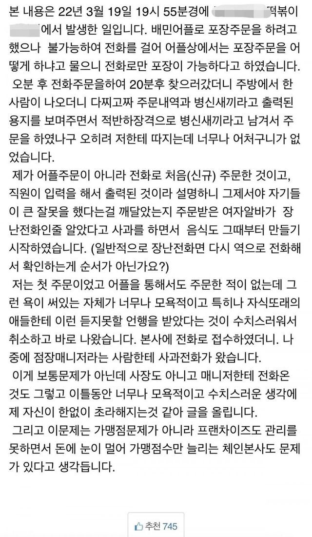 인터넷 커뮤니티에서 난리난 욕설 떡볶이집 결말