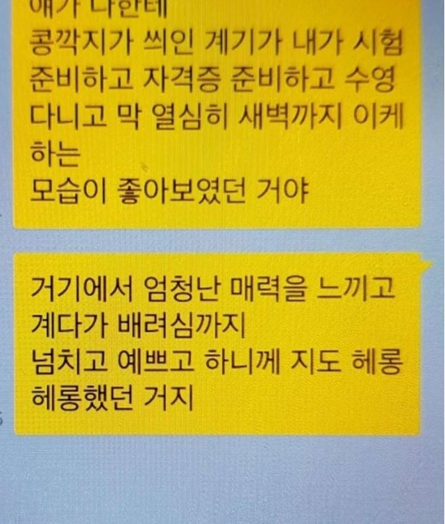 큰 충격을 받은 A씨는 하루가 지나자 여자친구에게 이별을 선언했으나 카톡 내용을 봤다고 하진 않았다고 한다.