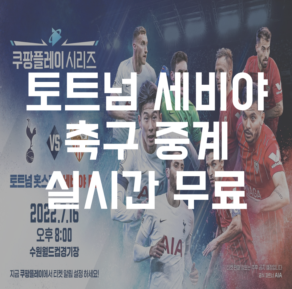 토트넘 세비야 축구 중계 방송에 대해서 한번 알아보도록 하겠습니다. 토트넘과 세비야 중계 일정은 22년 7월 16일 토요일 오후 8시 수원월드컵 경기장에서 킥오프 예정입니다. 중계 방송에 대한 자세한 내용을 한번 알아보도록 하겠습니다. 그 외 22년 7월 토트넘 프리시즌에 대한 정보가 필요하신 분은 하단 배너를 참고해주세요.