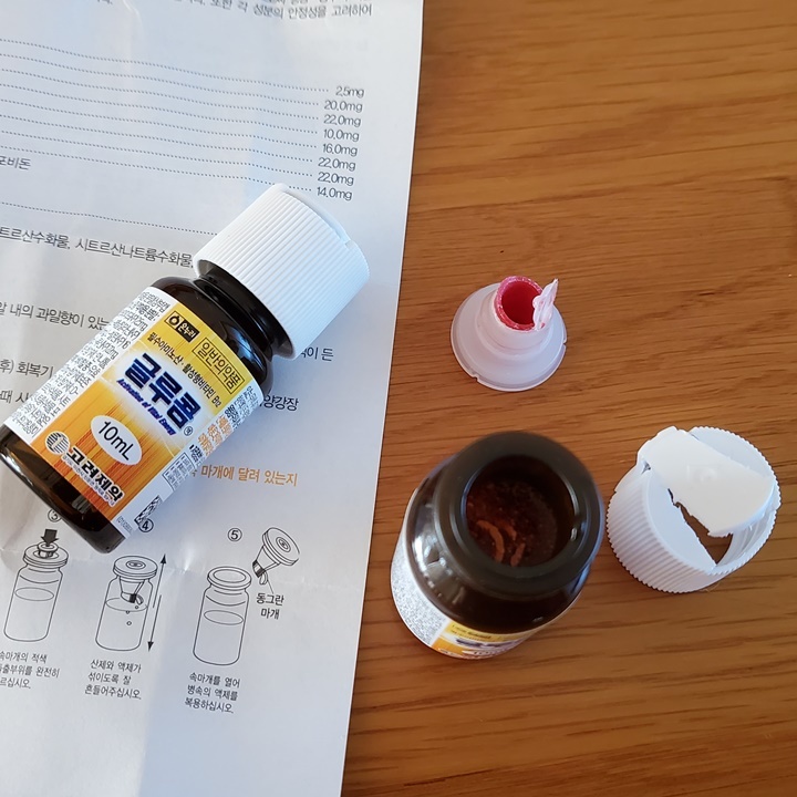 - 위에 알약 먹고 밑에 액체 마시면됨