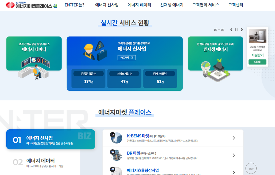 1. 한전 에너지 마켓 플레이스 홈페이지에 접속합니다.