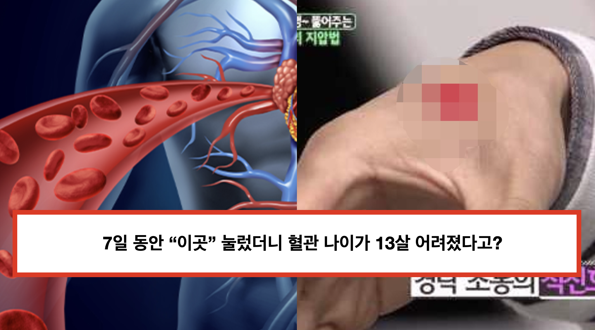 나이가 점점 들어갈 수록 외적인 모습도 중요하지만 신체 건강에 대한 나이도 중요할 수 밖에 없습니다. 과거 MBN 엄지의 제왕에서 출연한 사미자 배우님께서 1주일 동안 신체의 5곳을 7일 동안 눌렀는데 혈관 나이가 무려 13살이 어려졌다는 소식이 큰 화제가 되었습니다.