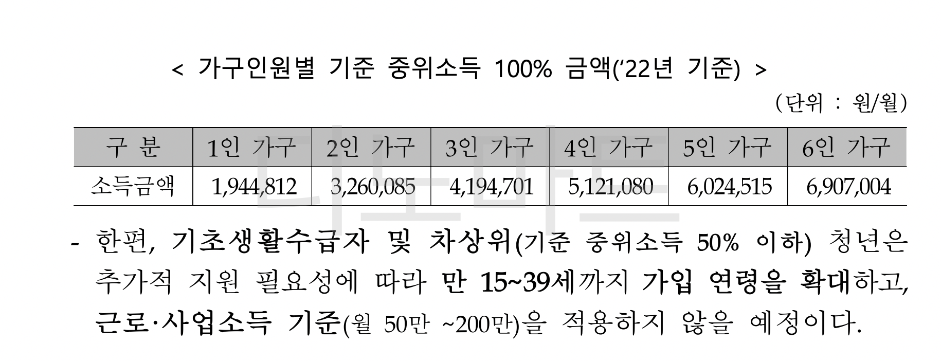 가구인원별 기준 중위소득 100% 이하 금액은 아래와 같습니다.