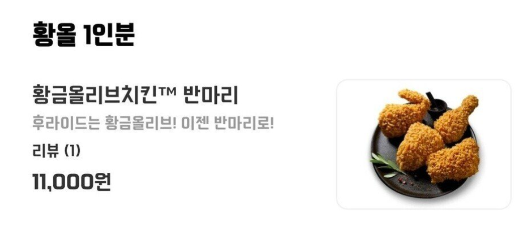 대기업 당당치킨을 대응하기 위한 BBQ 황올 11000원 출시
