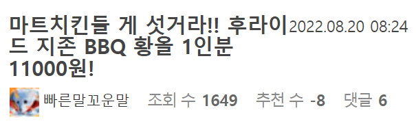 대기업 당당치킨을 대응하기 위한 BBQ 황올 11000원 출시 :: 한일톱텐쇼2 투표하기