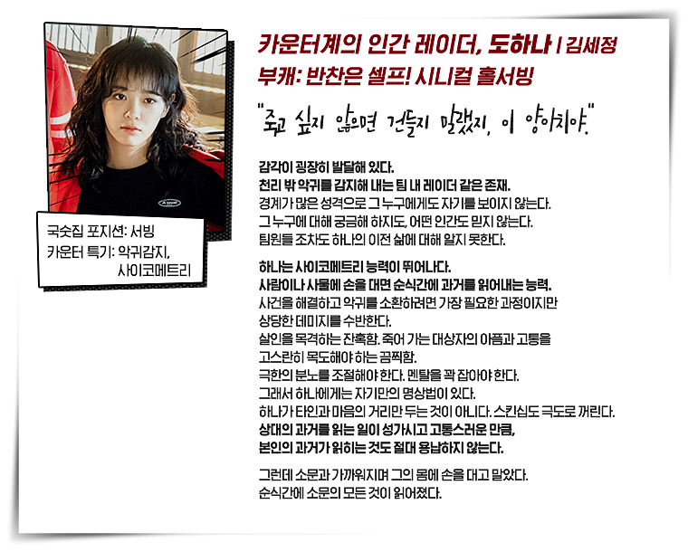 국숫집 포지션 : 서빙, 카운터 특기 : 악귀감지, 사이코메트리