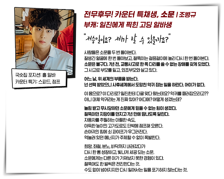 국숫집 포지션 : 홀 알바, 카운터 특기 : 스피드, 점프