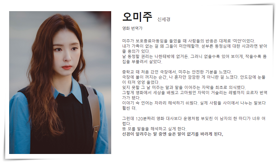 오미주(신세경) : 영화번역가