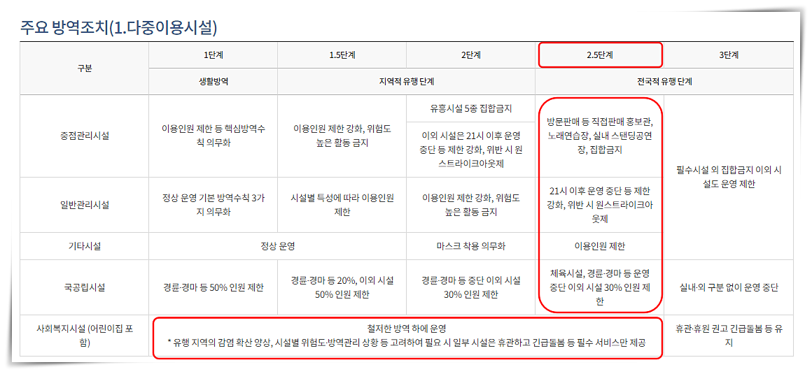 서울 코로나 사회적 거리두기 2.5단계 : 다중이용시설