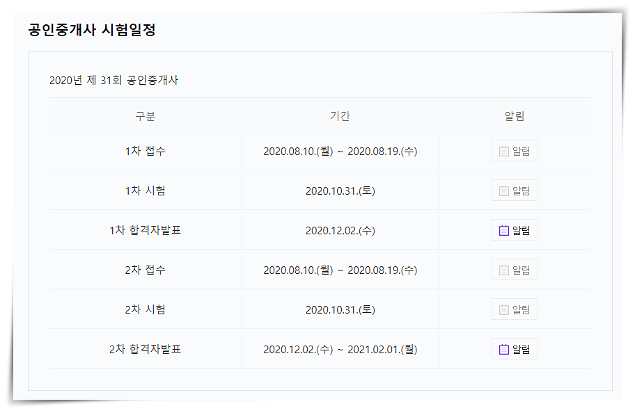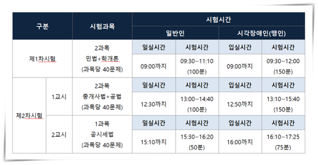 오늘은 공인중개사 시험시간표 및