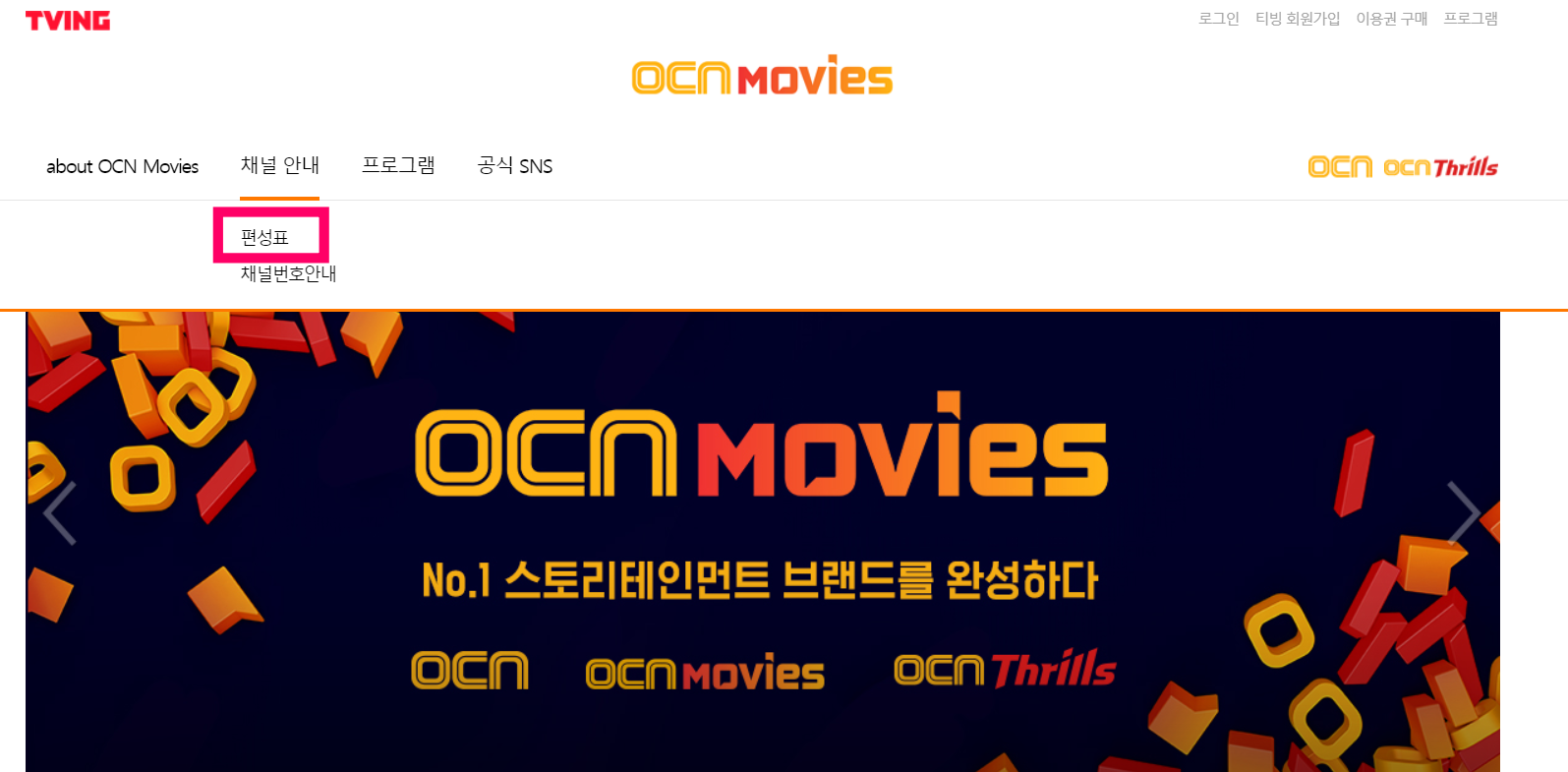 해당 홈페이지에 들어가면 채널 안내 옆에 편성표라고 되어 있습니다.