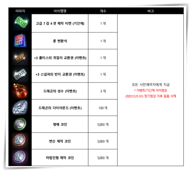 인벤 기사도M 사전예약 지급 아이템