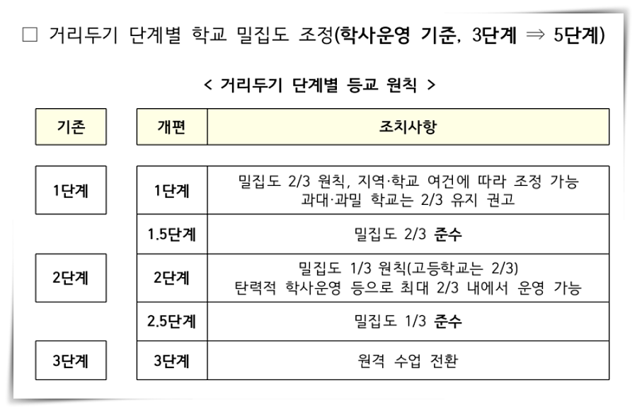 거리두기 단계별 학교 밀집도 조정