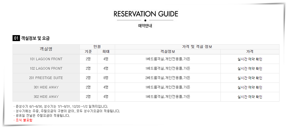 맞는 객실정보를 확인하고